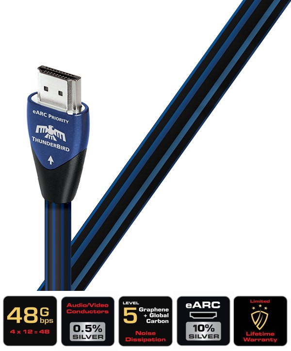 Kabel HDMI AudioQuest THUNDERBIRD eARC 8K - 10K, 48 Gbps, kombinuje špičkové materiály se špičkovou konstrukcí a zaručuje vynikající audiovizuální zážitek.